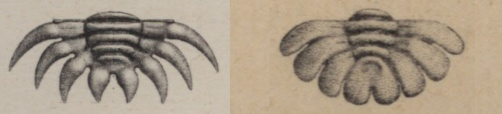 Vlevo Actinopeltis carolialexandri Hawle & Corda, 1847 †, vpravo Actinopeltis insocialis (Barrande, 1852) †.